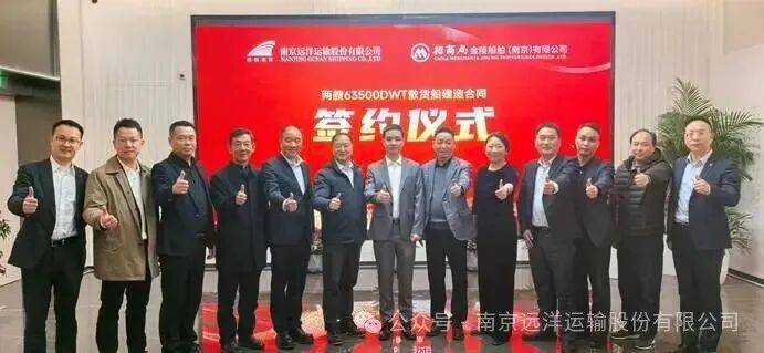 3月12日,南京远洋运输股份有限公司与招商局金陵船舶(南京)有限公司在南京举行两艘63500DWT散货船建造合同签约仪式。