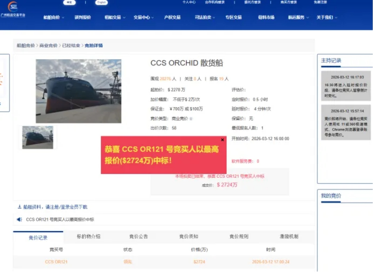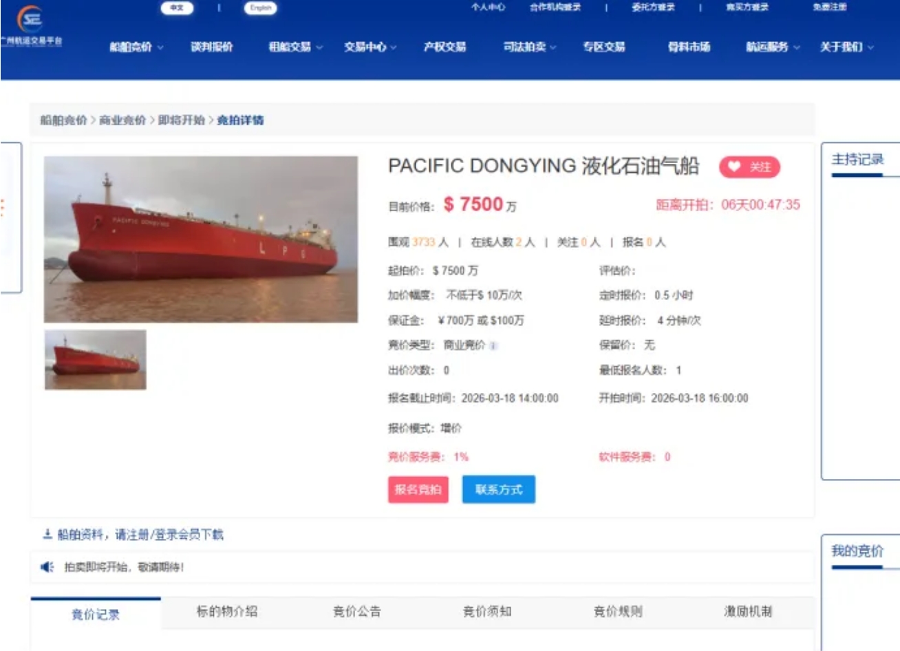 “PACIFIC DONGYING”轮竞价页面https://www.gse020.com/#/boatbiddingbegin?auctionid=1002091