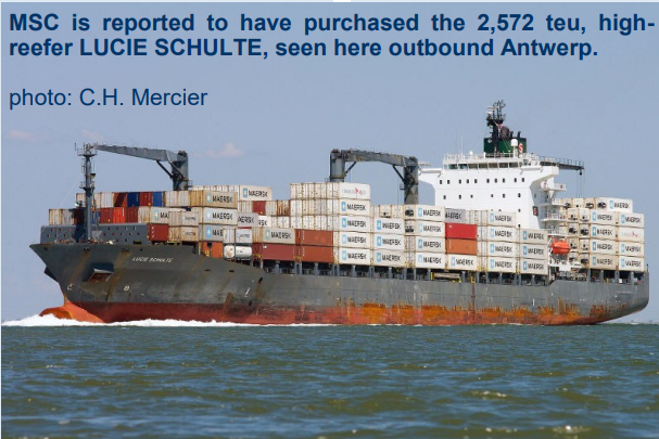 此次 MSC 买入的LUCIE SCHULTE和MARGARETE SCHULTE,均由韩国镇海 STX 船厂于2006年建造,原属德国 Schulte Group。两船单船运力2,572 TEU,载重吨约34,396吨,船长210米,型宽30.10米。