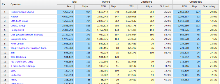 如果把这笔交易放在 MSC 当前的整体船队版图中看,其意义会更加清晰。按照最新船队统计,MSC 目前现役船队已达994艘、总运力726.87万TEU,其中自有船舶740艘、自有运力约461.04万TEU;租入船舶254艘、租入运力约265.83万TEU,租船运力占比约36.6%。这意味着,MSC正在通过扩大自有船队维持核心网络控制力,与此同时,公司还持有127艘新造船订单、合计216.33万TEU。