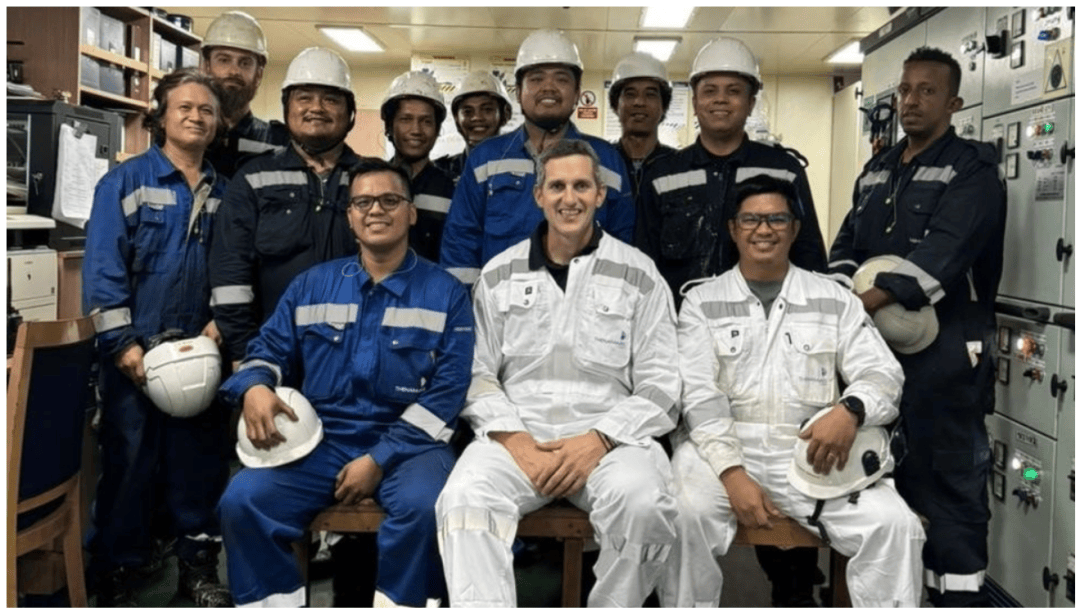 Thenamaris首席执行官尼古拉斯·马蒂诺斯与其一艘船只的船员合影(来源:Thenamaris,LinkedIn资料)