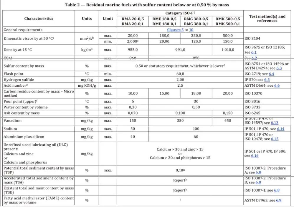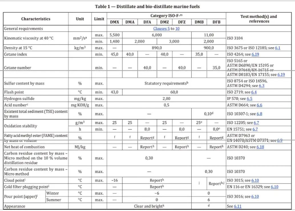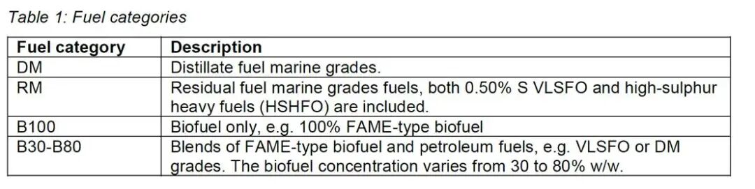表1:馏分油和生物馏分油船用燃料;