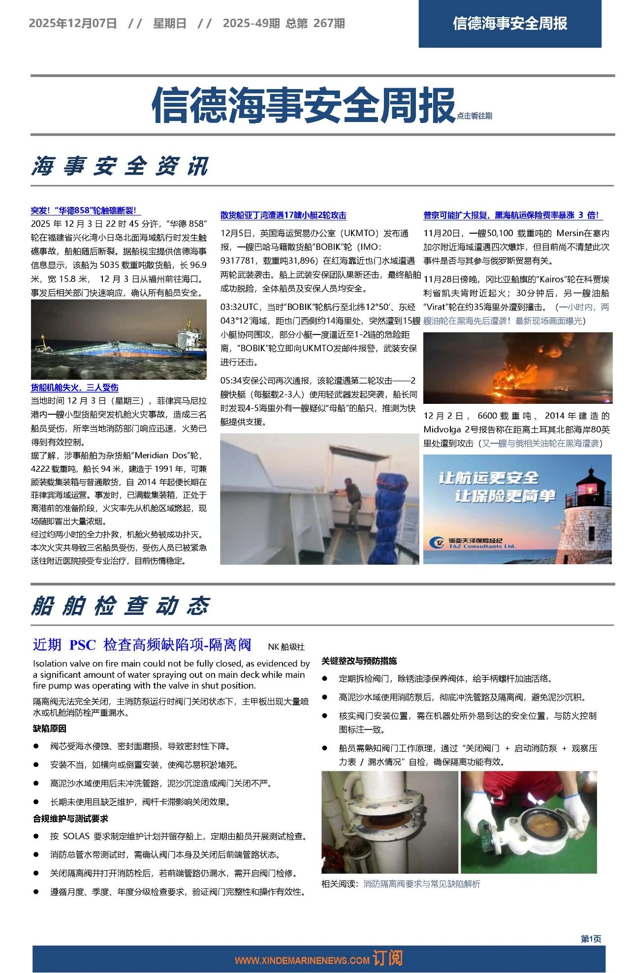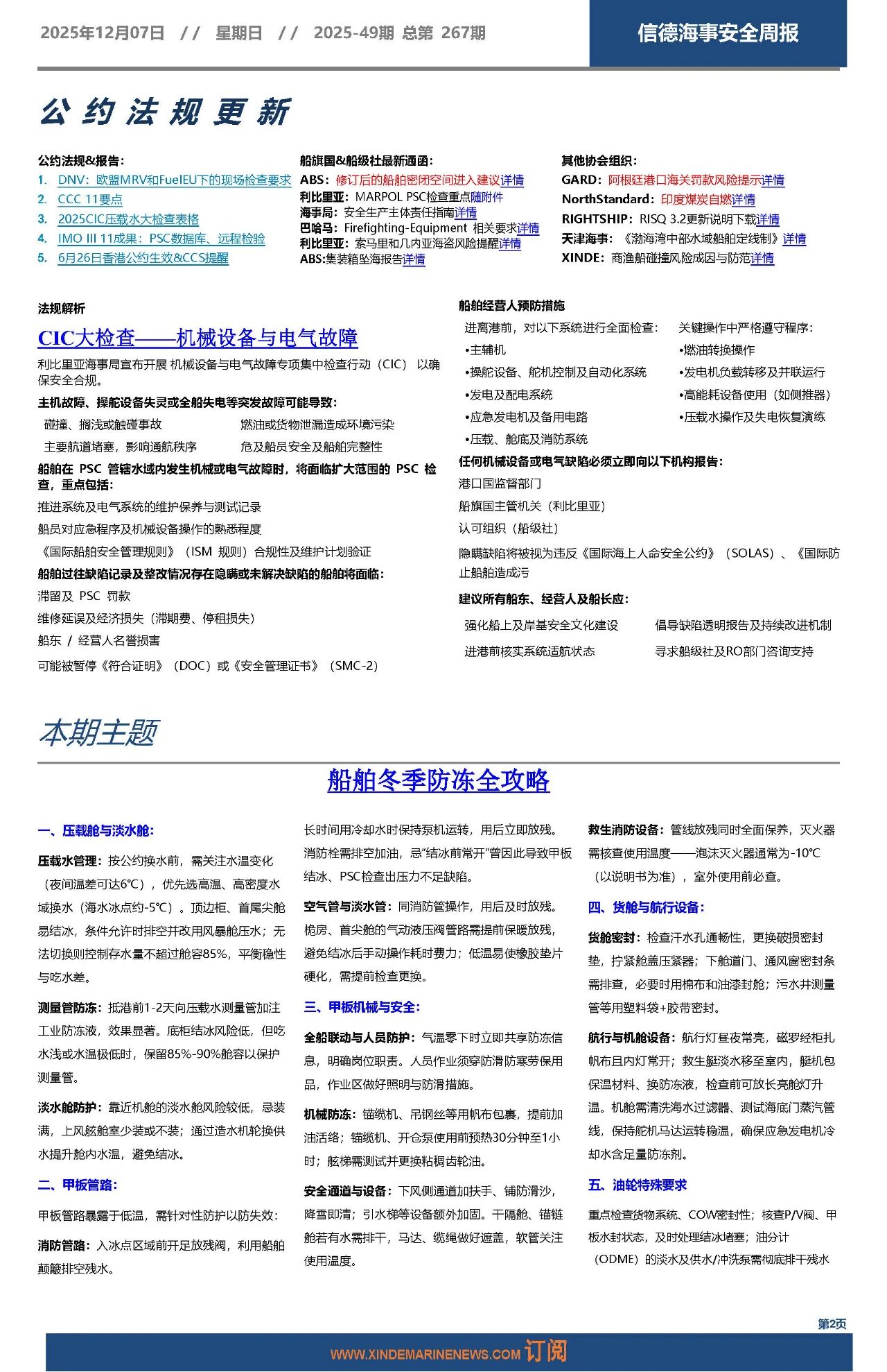 信德海事一直把实现海上更安全当作我们的愿景之一。2020年8月22日正式推出《信德海事安全周报》,2021年1月,《信德海事安全月报》上线;2021年2月,《信德海事安全指南》上线;2025年7月,《MARINE SAFETY BULLETIN》上线,实现中英双语发布。如有船公司需订阅以上产品,请发送邮件:safety@xindemarine.com,或联系主编:18641784019(微信)。