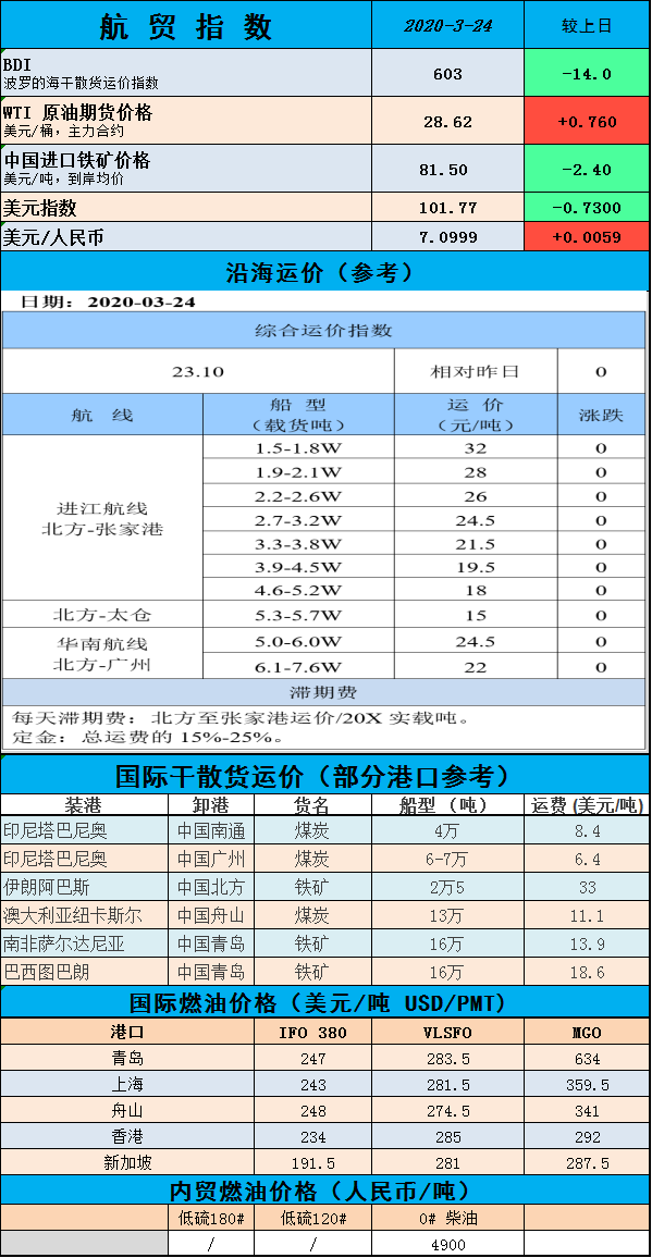 7. 【铁矿石】3月24日讯, 周一,大连铁矿石期货价格下跌6%,触及跌势极限,导致中国黑色金属期货再次出现剧烈抛售,因遏制冠状病毒疫情的更严格措施进一步使全球经济前景黯淡。
