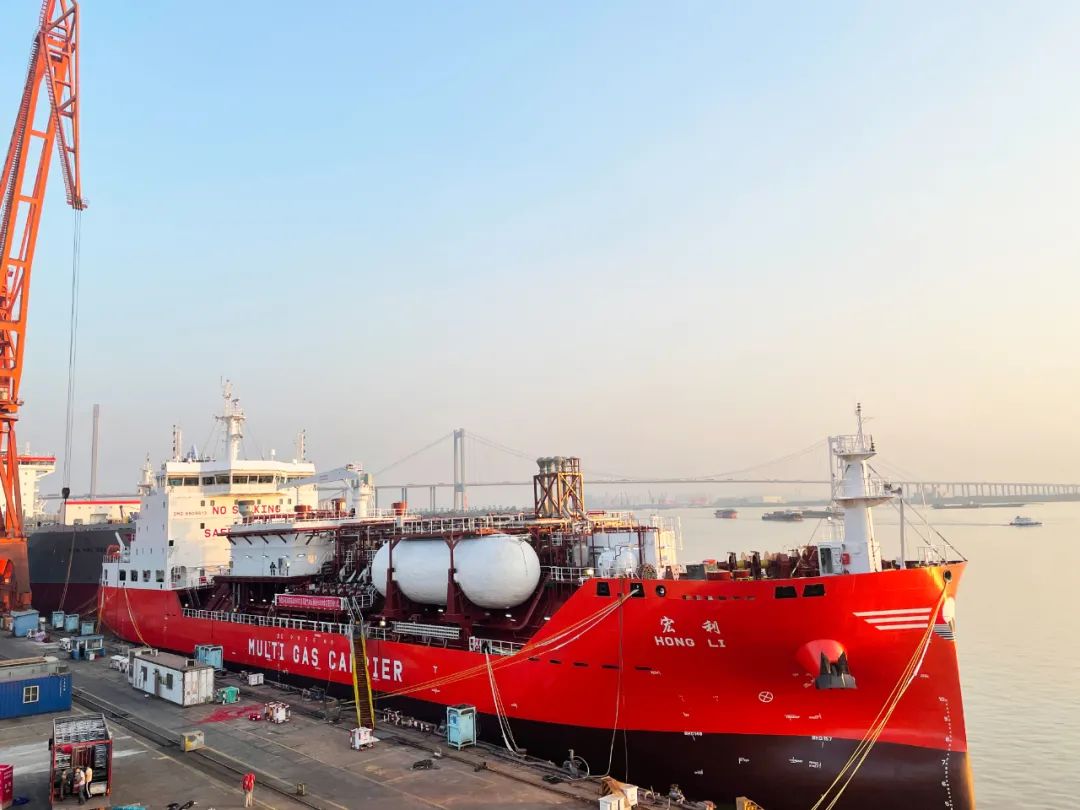 4、12月10日,由中国船级社(CCS)广州分社执行检验的我国首艘液化天然气(LNG)双燃料多用途气体运输船“宏利”轮在中船黄埔文冲顺利交付。