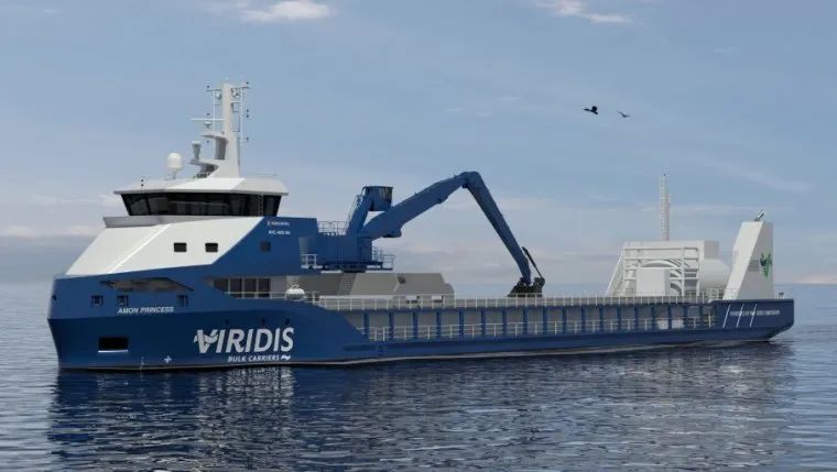 2、6月8日,Nor-Shipping 2023展会上,航运初创公司Viridis Bulk Carriers的氨燃料短海散货船设计获得挪船级社DNV的原则批准 (AiP)。