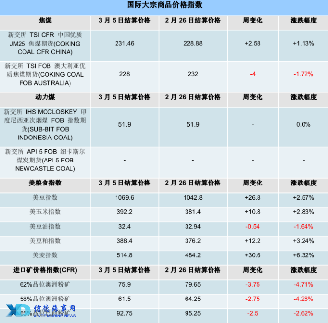 一、市场综述 本周干散货运输市场,各船型运价指数涨跌互现。其中,海岬型船运价指数下降537点,巴拿马型船运价指数转跌6......
