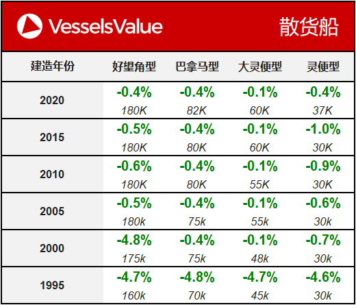 本周散货船价值走势略有疲软。