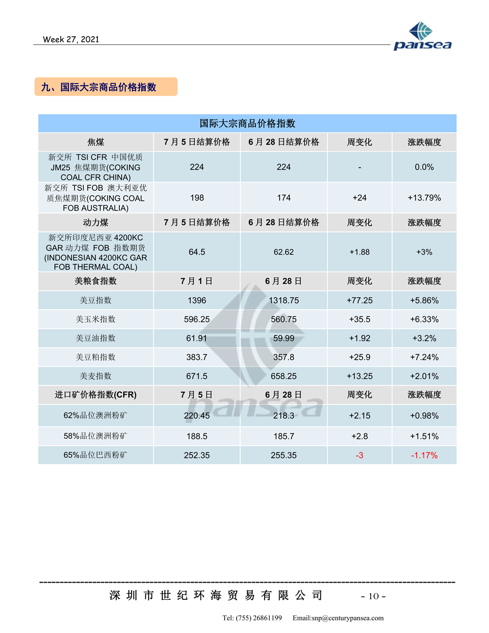 一、市场综述 本周干散货运输市场,各船型运价指数涨跌互现。其中,海岬型船运价指数下降537点,巴拿马型船运价指数转跌6......