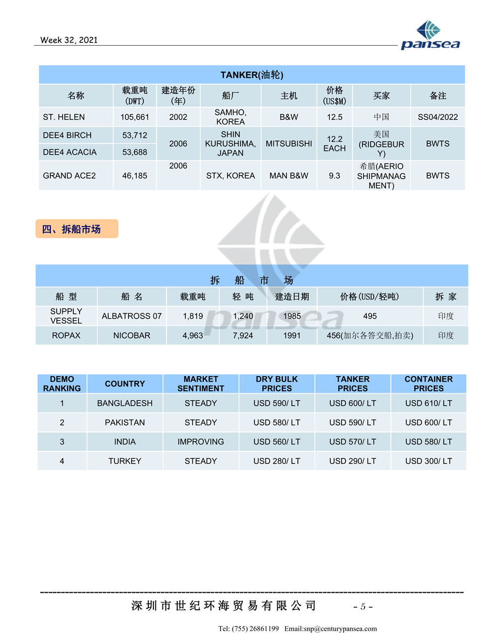船舶交易市场报告 2021 - 32周
