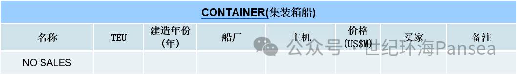散货二手船市场,海岬型散货船“CAPT TASOS”(182,288载重吨,2023年日本名村建造,安装压载水系统)据报以7,050万美元出售给NORDEN;“CAPE STAR”(175,366载重吨,2010年江苏熔盛重工建造,SS/DD 07-2025,安装压载水系统)据报以2,100万美元出售给中国买家;“HIGHLAND PARK”(174,093载重吨,2006年外高桥建造,SS 03-2026/DD 06-2024,安装压载水系统)据报以1,550万美元出售给中国买家。超巴拿马型散货船“FLAG TRIAS”(93,492载重吨,2007年日本名村建造,SS 01-2026/DD 02-2024,安装压载水系统)据报以1,450万美元出售。卡姆萨尔型散货船“ARTEMIS”(81,963载重吨,2013年大连中远重工建造,SS 01-2028/DD 02-2026,安装压载水系统)据报以1,950万美元出售给中国买家;“SUPER LUNA”(81,517载重吨,2016年金海重工建造,SS 06-2026/DD 09-2024,安装压载水系统)据报以2,260万美元出售。ULTRAMAX型散货姊妹船“XING HE HAI”(61,473载重吨,2016年大连中远川崎建造,4X30吨克令吊,SS/DD 03-2026,安装压载水系统)和“XING HAO HAI”(61,452载重吨,2016年大连中远川崎建造,4X30吨克令吊,SS 03-2026/DD 03-2024,安装压载水系统)据报以每艘2,600万美元打包出售给中国买家。超灵便型散货船“IKAN PARANG”(56,618载重吨,2011年泰州口岸船厂建造,4X30吨克令吊,SS/DD 12-2025,安装压载水系统)据报以1,180万美元出售。灵便型散货船“VANTAGE SWORD”(28,310载重吨,2009年日本SHIMANAMI建造,4X31吨克令吊,SS/DD 02-2024, LOGS-FITTED,安装压载水系统)据报以约900万美元出售给越南买家。