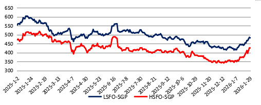 上周新加坡高硫380cst燃料油均价414美元/吨,较前一周均价上涨30.6美元/吨,0.5%低硫燃料油均价475.4美元/吨,较前一周均价上涨27.4美元/吨。