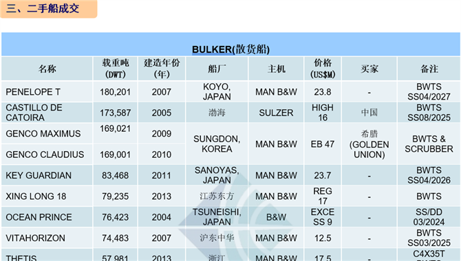海岬型船舶 海岬型船舶市场上周整体表现强劲,波罗的海海岬型航线 (5TC) 租金价格上涨势头迅猛,从周一的20,872美元大幅上涨至26,777美元。上周初,太平洋板块C5航线交易活跃,矿业公[详细]
