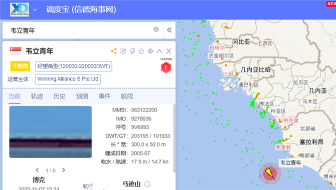 重磅|首船启航!韦立完成西芒杜铁矿全链路贯通,全球铁矿航运版图迎来关键拐点 2025 年 12 月 2 日,随着韦立国际集团旗下 20 万吨级散货船 MV WINNING YOUTH 轮缓缓离开几内亚马瑞巴亚[详细]