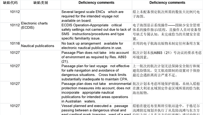 巴拿马海事局发布针对悬挂巴拿马旗船舶在澳大利亚港口 PSC 检查中被 AMSA 发现的航次计划与预定航行走廊执行相关缺陷频发问题,列明ECDIS 操作、航海出版物、航次计划制定、航行监[详细]