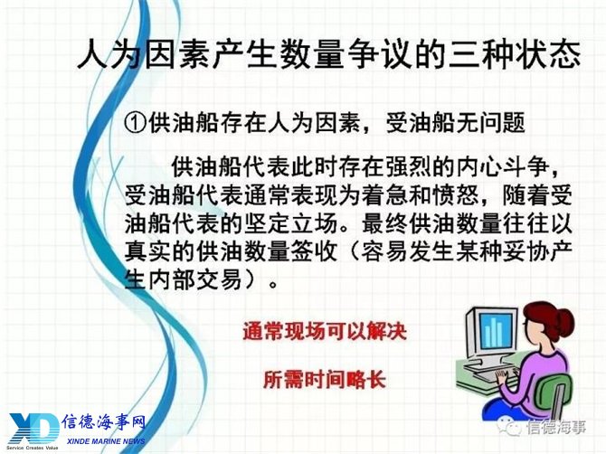 数量争议无法现场解决时,供受双方应本着确保安全、不耽误双方船期的原则处理,供油方代表应准备《争议声明》,受油方代表应配合填写完整后双方签字盖章,以便于后期的商务处理。