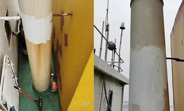 18 主甲板至左侧生活区梯道顶部支点开焊断裂,生活区多个梯道踏板锈蚀洞穿。