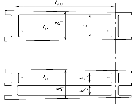 式中:b----开口宽度,m,如有几个舱口并列,则b代表各开口宽度之和,即b=b1+b2,见图1.1.2.17;