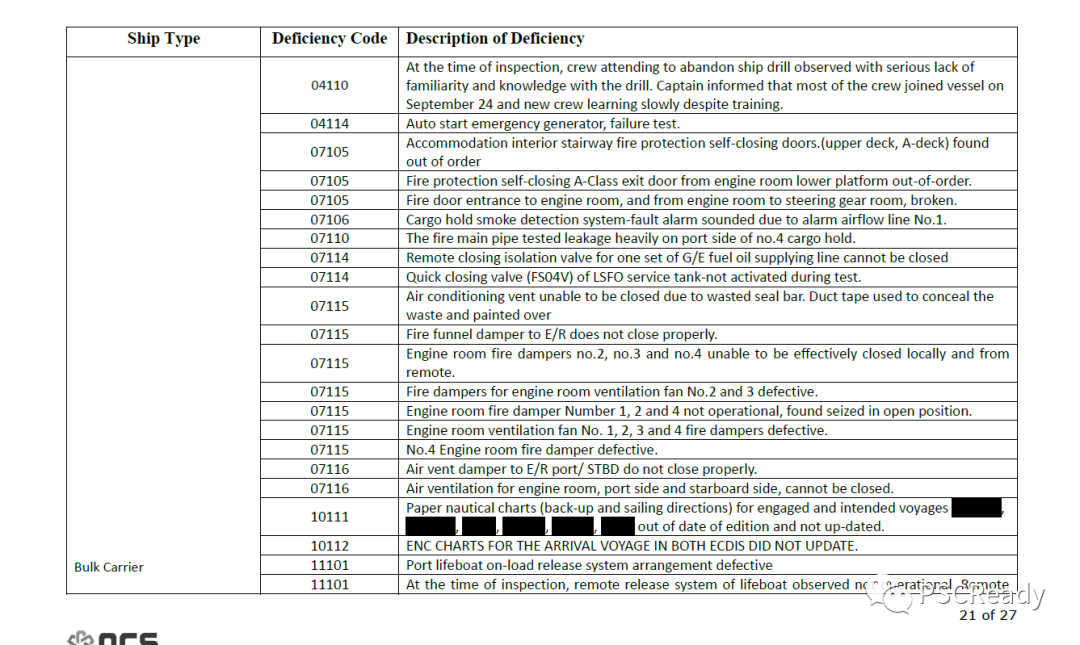 这一部分是船级社协会精选的PSC常规滞留的缺陷集合,请大家欣赏