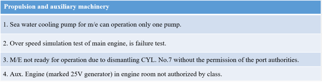 根据国际载重线公约要求,干舷甲板上的压载舱或其他液舱空气管高度自甲板至水可能从管口进入空气管内算起至少应为760mm,结构应坚固,并设有自闭装置等。本例中,从多个空气管内的浮子盘损坏和橡胶垫片缺失描述来看,PSC检查过程中对甲板空气管进行了拆解检查,不难看出PSC检查对空气管的重视程度不同一般。另外,FSC也同样高度重视空气管方面缺陷的检查。据不完全统计,浦东海事局最近三年有关空气管类单项滞留缺陷达55项,其中典型缺陷如下:主甲板两舷边舱大量空气管关闭装置损坏、前压载舱空气管关闭装置脱落、干舷甲板两舷的所有空隔舱空气管均无合适的关闭装置、主甲板左右舷多个空气管锈烂破损/自闭装置卡阻、主甲板前部右侧一个边舱空气管关闭装置灭失、干舷甲板右侧一个货舱空气管被改装,导致该空气管无法自动关闭、主甲板左右两舷边舱空气管关闭装置故障、主甲板左右两舷压载舱部分空气管自闭装置内积锈严重、船舶主甲板两舷重油燃油柜/左舷重油日用柜/轻油日用柜空气管断裂、主甲板右舷四根边舱空气管浮球卡死,等等。由此可见,无论国际航行还是国内航行船舶,均应重视空气管的维修保养工作,避免因此类缺陷被滞留。