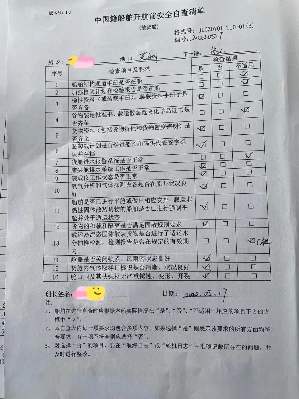 1.配备打印机的船舶在接收到海事执法人员电子版形式的检查报告后,将报告打印出来,船长签字确认并加盖船章后拍照发还给海事执法人员,同时船上做好留存。没有配备打印机的船舶也可通过视频方式确认,先保存电子版检查报告,然后通过公司打印,再送至船上留存。