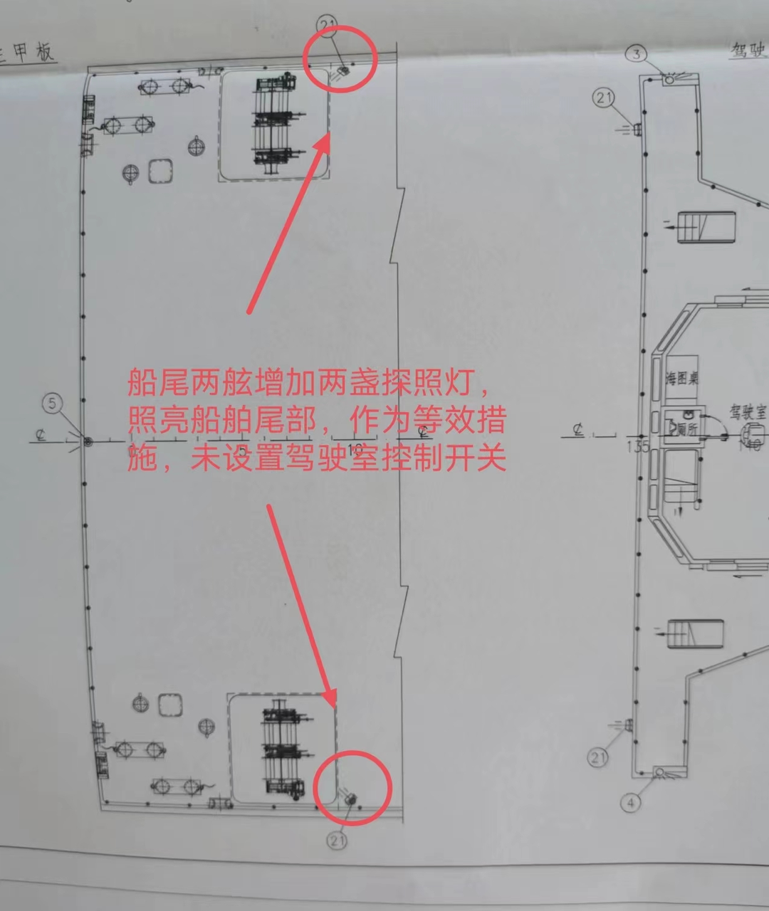图三:“B”轮船尾探照灯未设置驾驶室控制开关