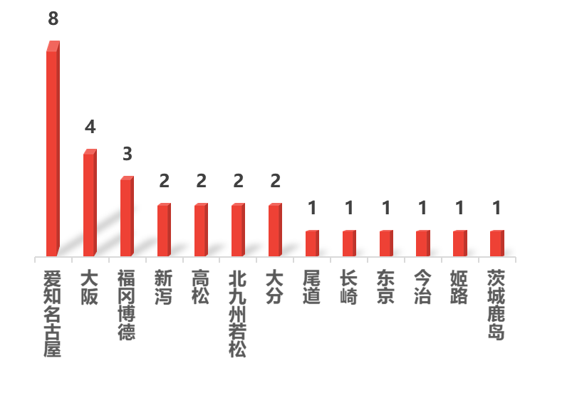 从检查地点分析,名古屋、大阪、福冈滞留艘次最多,分别占据总滞留艘次27.59%、13.79%、10.35%。其中,名古屋滞留船舶4艘次为船员COC认可签注无效、3艘次为消防演习船员不熟悉自身职责,占该地滞留总数的88%。