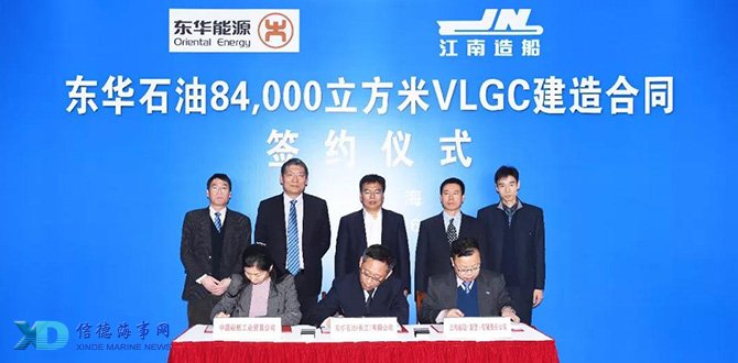 1月16日,江南造船与东华石油(长江)有限公司签署了2艘84000立方米超大型液化气船(VLGC)建造合同,这也是双方的首次合作。