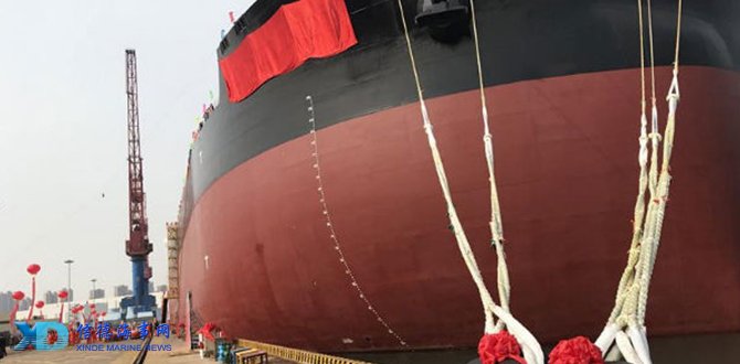 3月22日上午,在西海岸新区北船重工内,武船集团打造的新型40万吨超大型矿砂船“ORE TIANJIN”号命名交付。这是工银金融租赁有限公司订造的新型40万吨超大型矿砂船(VLOC)系列首制船,也是武船集团联手上海船舶设计研究院共同研发的新一代产品。