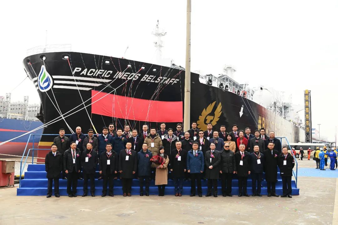 建造的全球最大舱容、世界首艘采用B型舱的99000立方米超大型乙烷运输船“PACIFIC INEOS BELSTAFF”号正式命名交付。