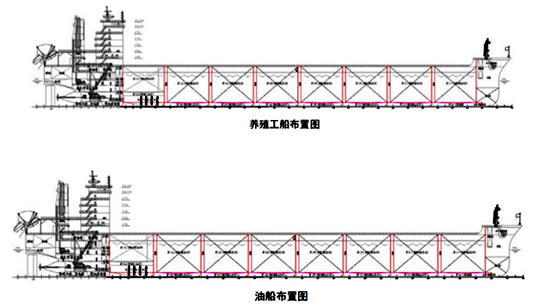 “国信1号”船体主体结构布置与油船类似(见以下图例)。