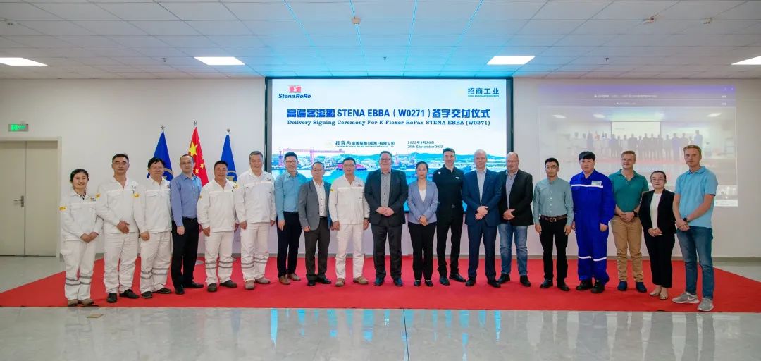 Niclas Martensson 先生指出,STENA EBBA是两艘大型E-flexer船中的第二艘,也是Stena Line接收的第五艘E-flexer系列船,交付后将在瑞典和波兰之间的航线运营。Stena Line对已接收的船舶质量、性能和设计非常满意,感谢船厂、现场监造组以及所有相关方对该船建造所作贡献,祝愿STENA EBBA安全到达欧洲,为我们带来希望和繁荣。