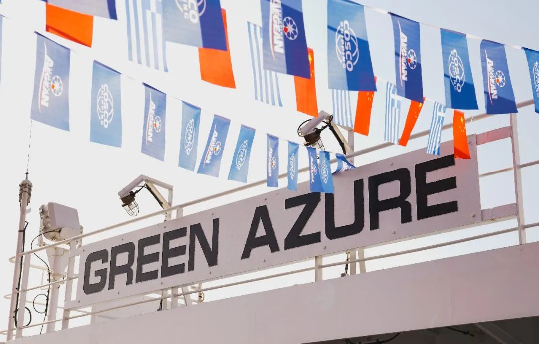 在交付仪式上,新船教母Sissy Konstantinidou Melisanidou通过视频形式将新船命名为“GREEN AZURE”轮,并送上了美好的祝福。