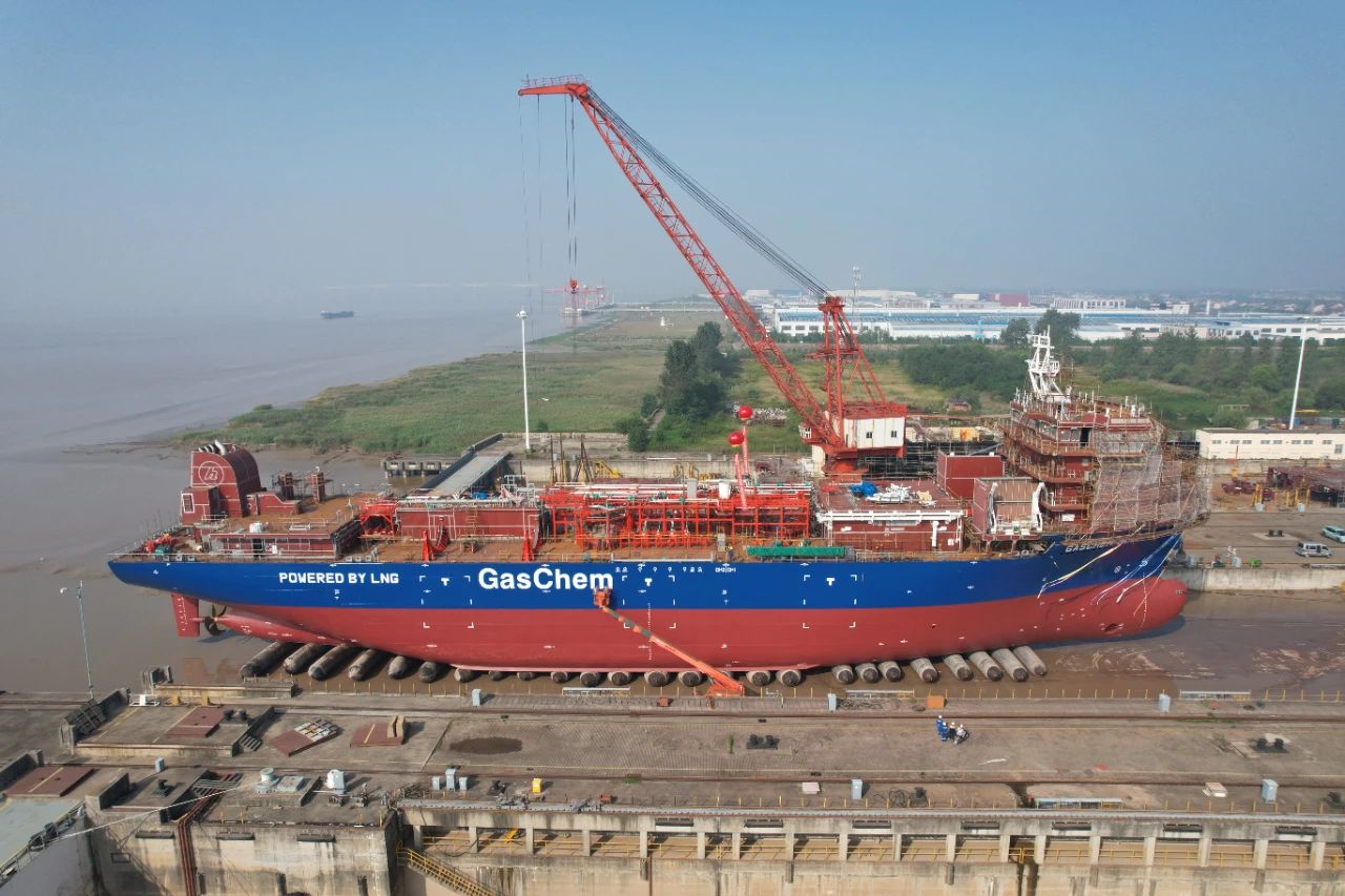 此次下水的7200立方米LEG运输船是中集太平洋海工为老客户德国Hartmann集团定制化设计、建造的又一艘液化气船,入级DNV船级社,总长约116米,型宽18米,型深12.3米,设计吃水7米,载重量约6300吨。该船采用MAN双燃料主机,与传统小型LEG运输船相比,在满足最新的排放要求的同时,显著降低了运输过程中的二氧化碳排放,是新一代绿色环保船型。