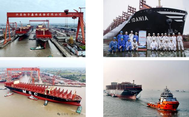 1月20日中午,扬子江船业集团扬子鑫福造船为SEASPAN建造的第三艘16000TEU集装箱船——“MSC IDANIA”轮交付离厂,上线MSC船队运营。
