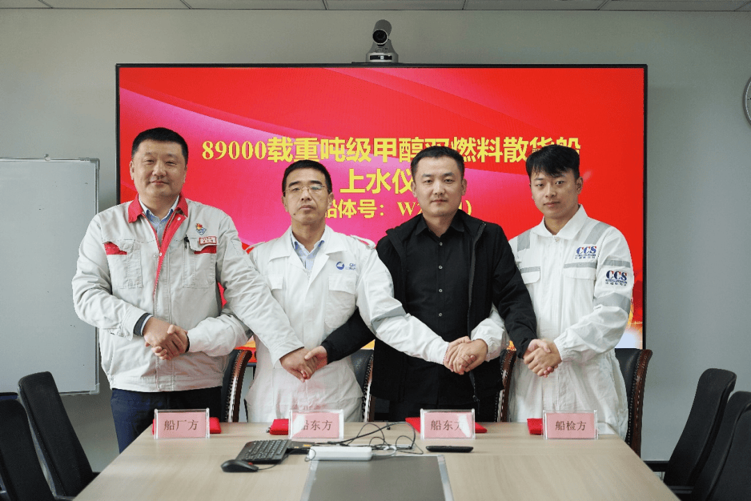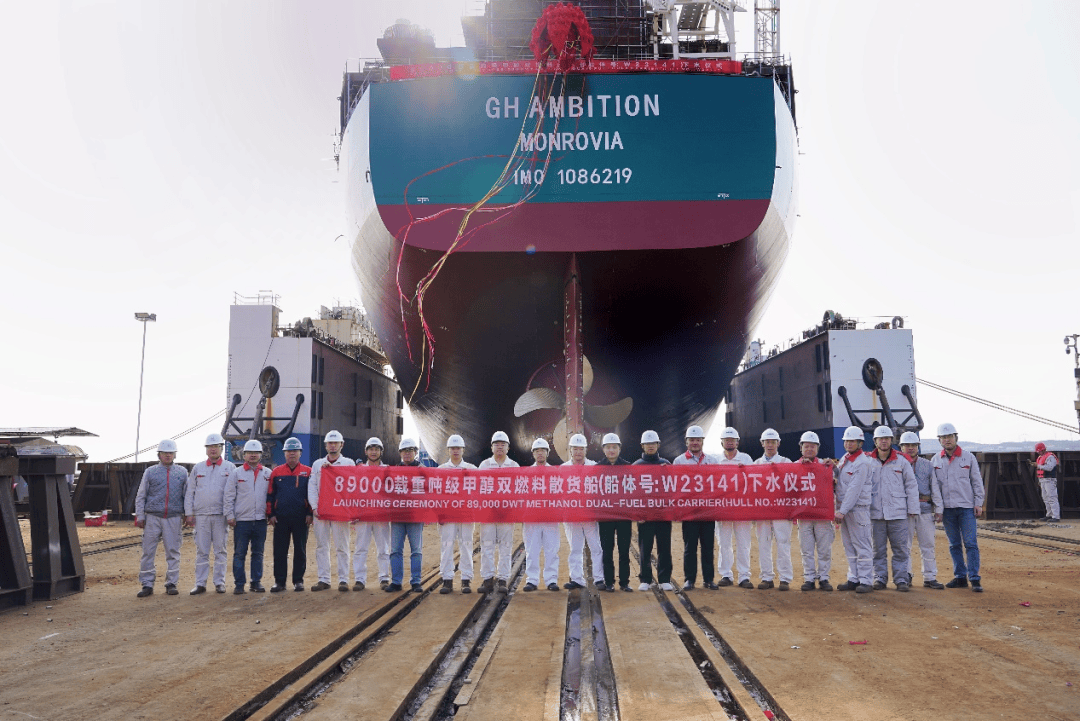 10月28日,国航远洋首艘89000DWT甲醇双燃料散货船(船体号:W23141)举行下水仪式,下水是船舶建造过程中的重大里程碑。该节点的完成,标志着其主船体建造工程圆满完工,正式转入舾装码头,进入码头舾装、设备调试及试航等新阶段。