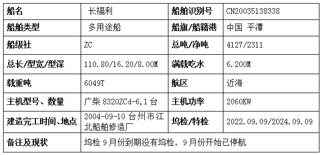 保留价:本标的船舶设置非公开的保留价,如竞价中最高出价未达到保留价,则不成交;
