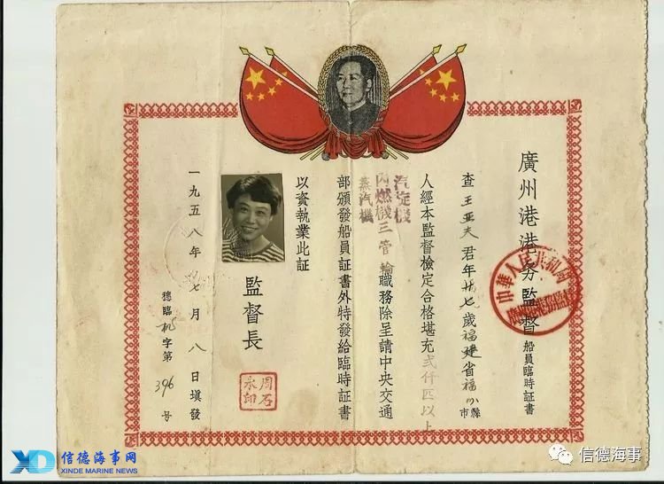 王亚夫80年前拍的一张照片,怎么也无法将这位清纯俏丽的女子,与长年在海上同惊涛骇浪搏斗的航海事业联系在一起。可这位出生在福州书香门第的富家小姐,为了自主自己的人生,干中国妇女没干过的事业,毅然决然地选择了航海,她凭着倔犟的脾气和天生的灵气,当上了新中国第一位女轮机长。