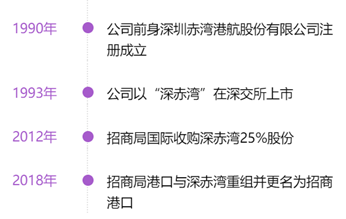 招商港口并非横空出世,其前身是“深圳赤湾港航股份有限公司,1990年在深圳注册成立。1993年以“深赤湾”在深交所上市。2018年12月26日,公司在深交所举行重组更名上市挂牌仪式,证券简称由“深赤湾A/深赤湾B”变更为“招商港口/招港B”,证券代码由“000022/200022”变更为“001872/201872”,实现港口资产A股整体上市。