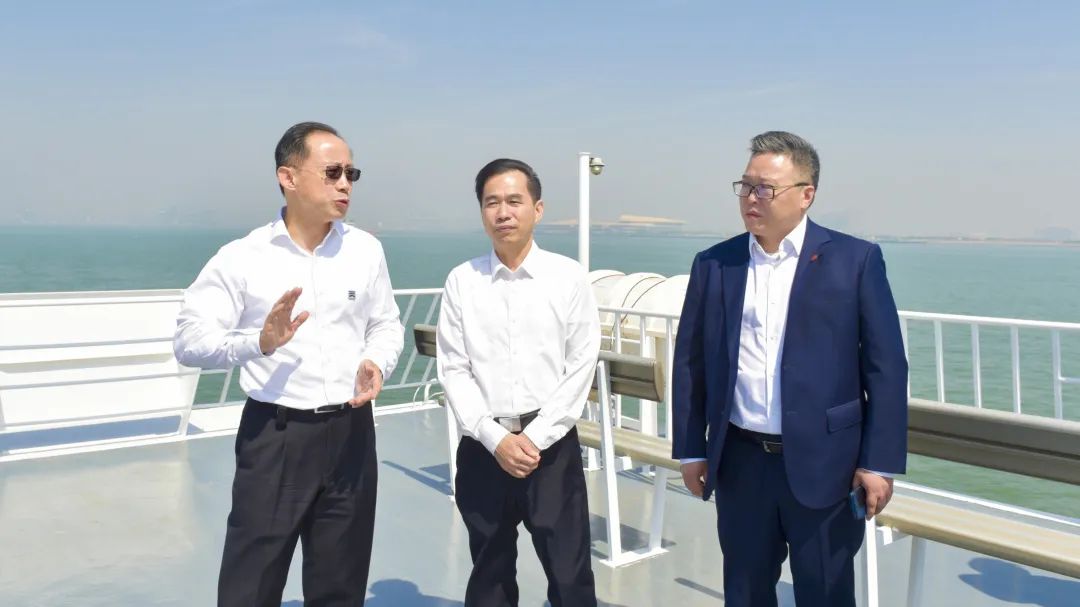 签约仪式前,陈志平、孙瑞一行观看了习近平总书记视察天津港一周年图片展,参观了天津国际邮轮母港,乘船海上考察了天津港,现场观摩了集装箱码头无人驾驶电动集卡运行情况。