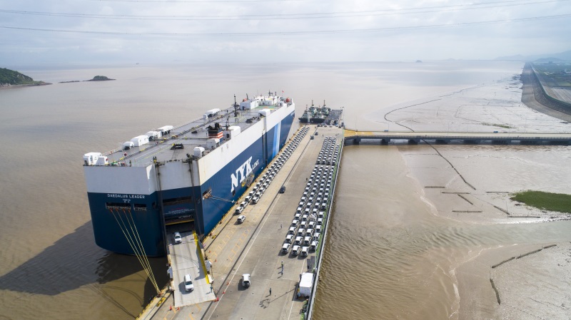 宁波舟山港梅西滚装码头是浙江省最大、最专业化的汽车滚装码头,已与华晨宝马、一汽大众奥迪、吉利汽车等多个汽车品牌建立合作,并成功开通滚装内外贸进出口业务。去年7月,该码头曾完成当时最大批次、共计3449辆外贸汽车的滚装出口作业。