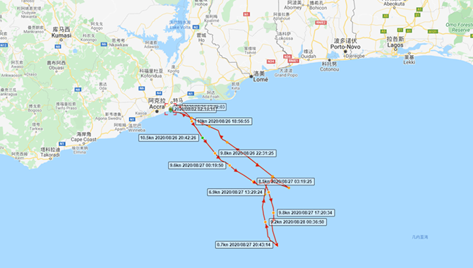 捕鱼船AP703(IMO:7419731)遭到海盗袭击,袭击位置:洛美以南95海里,经纬度:06 01N-- 001 31E,此渔船共计50名船员,包括48名当地人和2名韩国人,海盗在此次袭击中成功登船,最终绑架了两名韩国籍船员,乘快艇逃往尼日利亚海域。