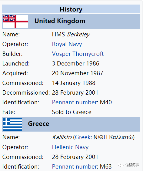 希腊海军“KALLISTO”号扫雷艇(原HMS Berkeley号),排水量仅为750吨,1987年建造。
