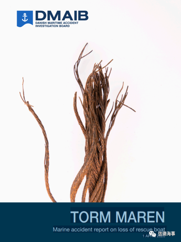 近日,丹麦海事事故调查委员会发布报告称,Torm Maren轮在几内亚附近海域演习时发生的这起救助艇从17米高处坠落导致3名海员严重受伤的事故是因为一条钢丝绳严重锈蚀所致。