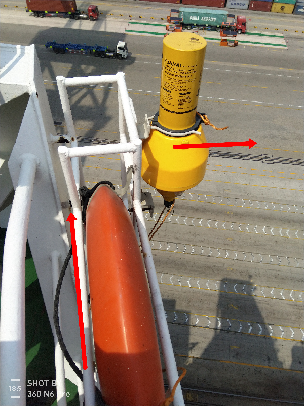 图7 | 救生圈释放方向和烟雾释放方向垂直,不能快速释放。
