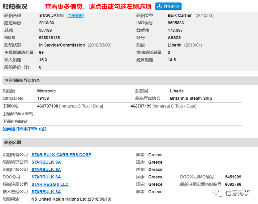 而悬挂利比里亚船旗的 Star Janni轮入 Britannia P&I船东互保协会,船级社为DNV GL。