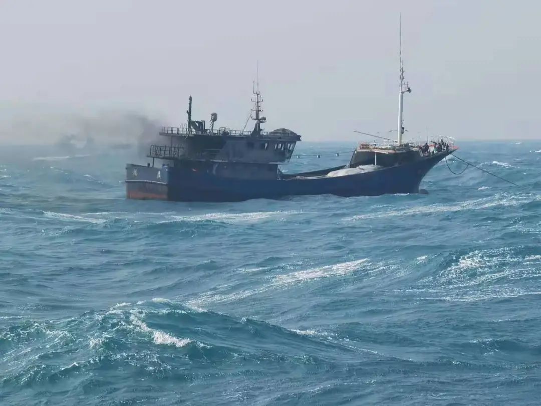 2月2日1450时,福建籍渔船“闽福鼎渔02335”在温州以东80海里海域机舱着火,船上9人遇险,情况十分紧急。