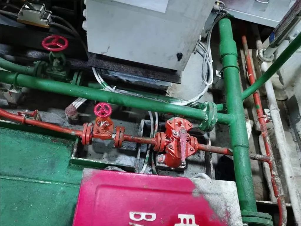 3.二氧化碳固定灭火系统总管上的压力表显示有约1Mpa的压力(漏气或者压力表故障)