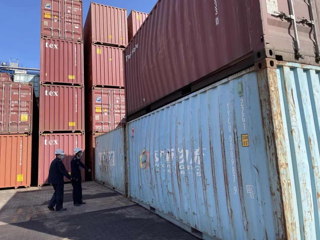 3月16日,连云港墟沟海事处执法人员通过港口大数据平台,对“新XX”轮集装箱装载数据进行核查时,发现该轮拟在本港装载的部分集装箱的总重量明显超出了该尺寸集装箱的最大总重量,遂直接去集装箱堆场进行核查,果不其然,全部都超载了!