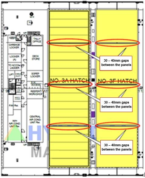 3号货舱被设计用于装载冷藏集装箱,并因此配备了附加的通风措施,该措施由32个自然通风孔和两个排气通风机组成。尽管没有为该货舱内的冷藏箱连接供电,但是调查组无法确定通风盖板保持打开状态的原因。